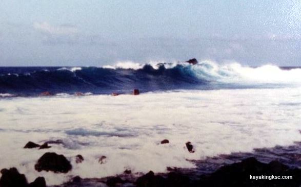 Surfing Ascension Island-Mark, Jeff & I might be in this pic. Notice the rocks to avoid?